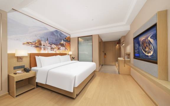 房间挺干净的,服务也比较热情贴心,电梯口还有个温馨提示牌提醒别忘记带好自己的随身物品,房间是小度智能的,很方便。而且下了高速就是他们家店。