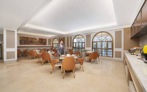 早餐挺丰富的,特别是煎的饼,特别好吃。前台服务热情,还给免费升级了房型。房间挺整洁的,特别提一下,前台的茶特别好喝