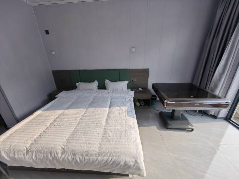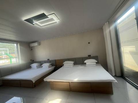 房间是新的,很干净,民宿就在路边,房间门口一大排停车位,停车方便,门前有一条小河,对面是大山,空气清新,床垫软硬适中,住的非常舒服,好评!老板人很好,做饭也好吃,养的几只小狗崽🐶,孩子玩的很开心,房间也不贵,性价比很高!