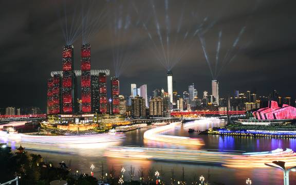 3. 视野无敌好。可以看我图,完全是正对来福士,可以看到俩江交汇处水的不同颜色,晚上亮灯之后很漂亮,重庆美景一览无余,后悔没有在重庆的第一天就住这里,导致退房的时候恋恋不舍。而且坐在阳台上就可以看到无人机表演,很值。