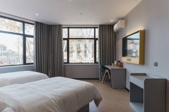 位置很好,城区的几个景点都在步行距离内,旁边也有很多家连锁奶茶店餐饮店。