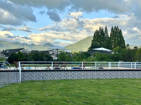 民宿四面环山,推窗就是景色。风景好,附近玩的东西也都很近,这个游泳池真的太棒了,玩的不亦乐乎,水也很干净,太满意了!这次带小孩来玩的,下次带父母再来一趟!旅游意外的惊喜!盲选的,开始看徽派建筑还有些担心,没想到多虑了,里面设计一点也不老土!房间装修很符合我们年轻人的审美!好喜欢这个院子呀,秋天可以围炉煮茶。喜欢喜欢喜欢,老板也很热心!