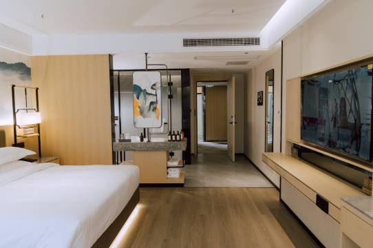 很好的酒店,让顾客感受到了宾至如归的体验,酒店有接送站服务,并且为出差的客人提供了电动车作为协助,房间设施崭新,落地窗外风景宜人,是一次非常好的入住体验,下次来还会选择这家酒店