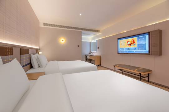 房间住宿整体满意,干净卫生,空调温度非常给力,淋浴出水量大。客服人员服务非常满意,酒店有单独的停车场,有小度智能助手。酒店离各大景点比较近,吃饭购物非常方便,可步行到达(根据自身情况),可坐公交车,出租车便宜。因下雨原因,又续住了一晚。