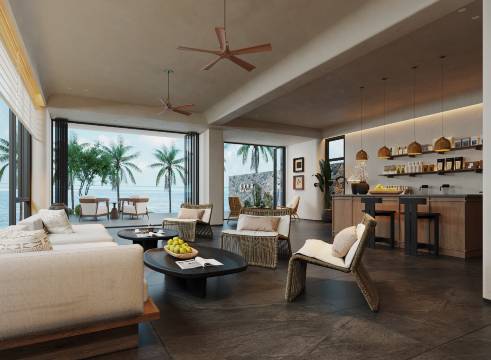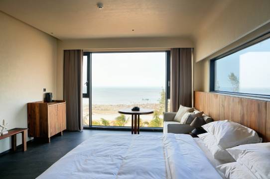 房间面朝大海景观很不错,且很喜欢民宿的大堂很通透是个朋友一起吹海风聊天。