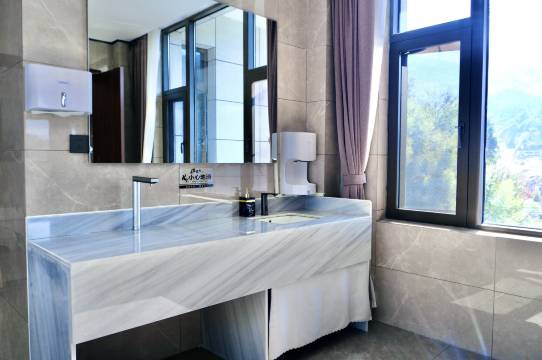 走进房间,就感觉眼前一亮,空间宽敞通透,采光极好,阳光毫无遮挡地洒满整个房间,让人心情瞬间舒畅。房间里一尘不染,床铺平整如新,桌面和地板都擦拭得光洁锃亮,能看出酒店在清洁上的用心。酒店依山而建,被郁郁葱葱的山林环抱,满眼都是深浅不一的绿意。清晨推开窗,山林间的清新空气裹挟着草木的清香扑面而来,深吸一口,整个人都神清气爽。傍晚时分,沿着酒店里幽静的步道散步,听着虫鸣鸟叫,吹着带着草木气息的晚风,一天的疲惫都在这惬意的氛围里烟消云散。