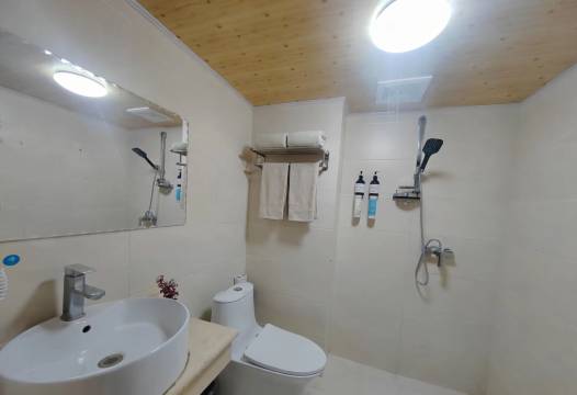 房间看起来很干净,热水出水快,水量大,洗澡很舒服。楼下有免费停车场。民宿距离九寨沟游客中心有3公里多,老板提供免费接送游客中心服务,很不错。