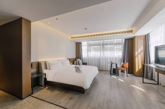 房间干净整洁舒适宽敞,环境优雅宜人,前台服务人员热情友好,耐心细致。房内设施配套齐全,赠有免费矿泉水4瓶。
