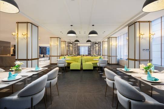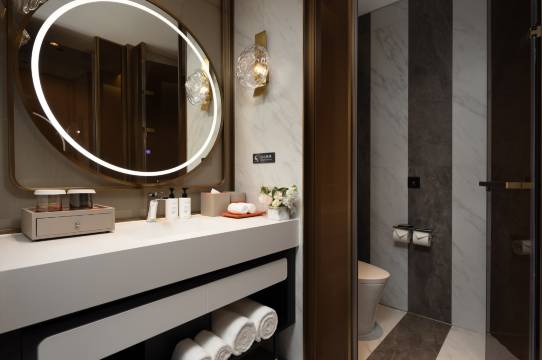 酒店大堂很大气,宽敞,装修很好,有免费的欢迎茶和咖啡自助售卖机比较方便,前台小王服务态度好,帮忙升级了房间方便距离公交车站和地铁站很近。