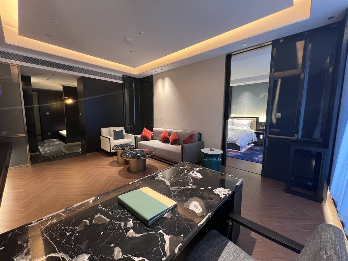 房间宽敞明亮,带一个大的落地窗,前台给免费升级了豪华型,真的很不错。早餐也相当不错。地面还有充电桩,非常方便,周围饭店和小吃店非常多,前台还推介了新区的夜市,品尝下当地的特色美食。