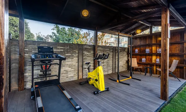 环境:小院景观做的很有品味,周边饭店小吃也方便。设施:都是全新的很到位,一楼有茶室、健身房还有聊天看书的地方。卫生:房间打扫的很干净。服务:老板很热情很细心