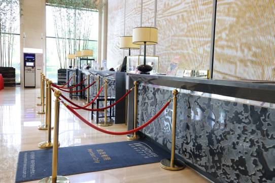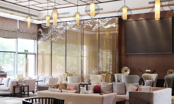 酒店大堂达970平方米,层高近10米,豪华经典、气势雄伟。采用各类高档材质修饰墙壁,描绘出客家山水的秀丽景象及人文风情,同时配合来自澳洲的Airaroma品牌香薰,使宾客感受非同凡响体验。