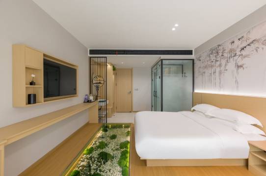一进来就有好大停车场 大厅好大 好多绿植 看着心情都很好 房间也很大 有任何问题 前台都给解决 还贴心送冰的矿泉水 一上楼 客房阿姨都给打招呼 下次一定还有在订这家 强烈推荐