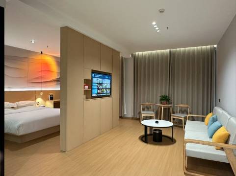 房间很干净整洁,智能客控,蛮好的,前台小姐姐服务态度也很好。下面的照片是住完后拍的照片,有点乱了。总之,房间蛮好的。还会再来的。