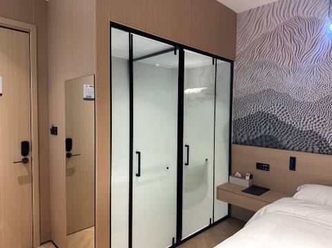 酒店房间卫生干净,设施挺新,全屋智能好用,双床房间空间比较大。前台小姐姐服务也很热情,推荐这家酒店。