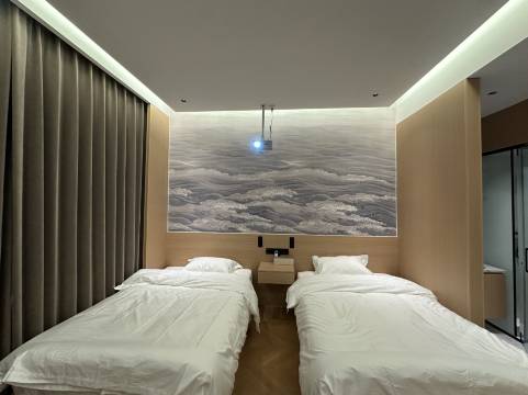 第一次住智能酒店就被圈粉,全屋语音操控,可以调节灯光、空调,拉窗帘,懒人福音!房间还配备智能音箱和投影,不错不错,我和我对象一块来的,晚上窝在床上看电影超有氛围!