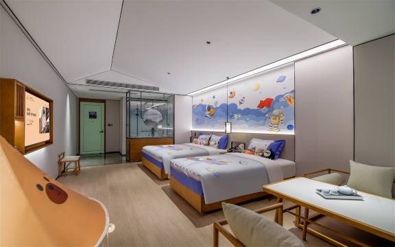 酒店新开的环境不错,周围有绿植环绕,走进来大厅香香的,前台小姐姐服务态度很友好,房间全屋语音智能控制,很方便。离方特也很近,下次来方特还来这里。
