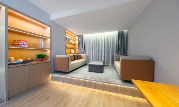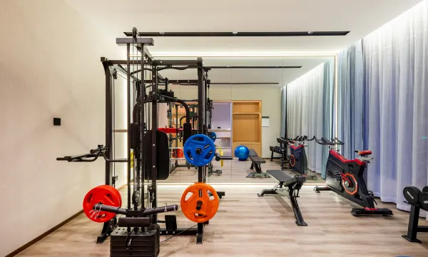 酒店配套设施齐全,洗衣服里有健身房,有一个跑步机还不错,在大厅还看到了扫地机器人。很不错哦!前台小姐姐也很耐心,介绍了吾悦广场和江大吃饭点。工作人员都会问好。
