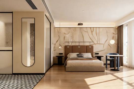 这家酒店真的超出预期!房间设计感拉满,黑白系的装修简约又高级,卫浴和床品都特别干净,床垫睡起来超舒服。细节也很到位,洗漱用品、小摆件都透着用心,住得太舒心了,下次来还选