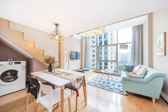 这是一家温馨具有特色的LOFTI酒店公寓,分为上下二层,1楼是餐厅和客厅,2楼是房间,有独立的客厅和餐厅,房间设计的简约时尚大气,给人一种愉悦的心情和优雅、纯粹与不凡感受,赋予酒店不同的气质和神韵,能体现不凡的生活品位,精致;卫生间大且干净整洁,提供无线上网,海信43尺寸网络电视高清直播,超过200多个卫星电视频道,让您随时了解时事新闻资讯或欣赏来自全球各地的精彩节目;24小时热水、空调、冰箱、洗衣机、厨房、卫生间设施设备齐全。