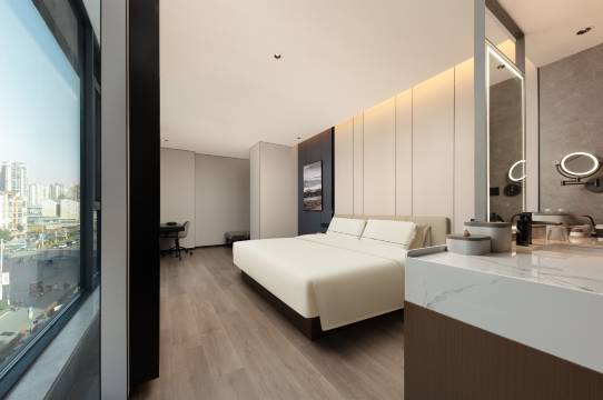 酒店入住体验非常棒,地理位置就在城中心,还有自己独立的停车场,我们外出都可以不开车。早餐品类丰富,味道也非常不错,酒店员工的服务意识非常好,还给我升级了房型,房间干净整洁,设施设备也非常新,值得推荐👍🏻
