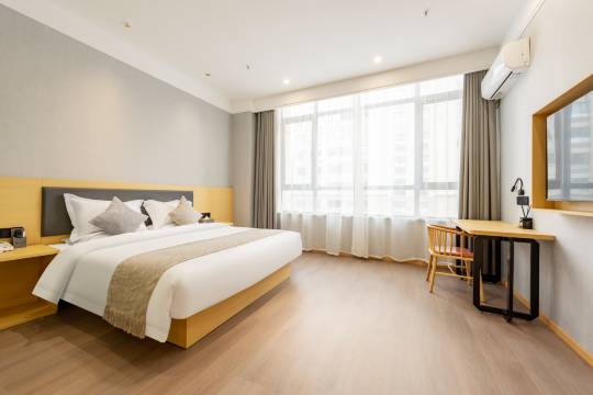 这次入住的大床房体验远超预期!酒店整体环境优雅整洁,公共区域打理得很用心,一进大堂就有种放松感。房间的朝向选得太赞了,超大窗户让阳光能铺满整个房间,白天不用开灯也格外明亮,视野也很开阔 。最惊喜的是隔音效果,窗外的喧嚣完全被隔绝,夜晚特别安静,搭配柔软亲肤的大床品,一夜都睡得格外沉。房间卫生也无可挑剔,桌面、窗台毫无积灰,卫生间干爽无异味,细节满分。从入住到离店都很舒心,下次来还会优先选这家,强烈推荐给注重睡眠质量和居住环境的朋友!