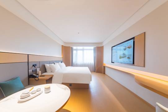 房间布局合理、干净,有桌椅还有沙发,六楼视野也不错,晚上也挺安静。智能马桶,干湿分离,就是淋浴间没有挂毛巾的地方。早餐有馄饨和红汤面,还有点水果,几个炒菜和包子、粗粮等等,最好避开就餐高峰时间,否则可能没地方坐。酒店门口有自己的停车场还有充电桩。另外,这个酒店很大方,除了常规的两瓶水,冰柜里面还给客人多备了六瓶,都是可以免费饮用的。早餐来不及吃的话阿姨也可以让你带点水果啊什么的走,挺人性化的。但是携程订单显示有欢迎水果的没有给到(新年可能政策不同,酒店订单里面看不到)。总体还是挺好的,有机会还会入住。
