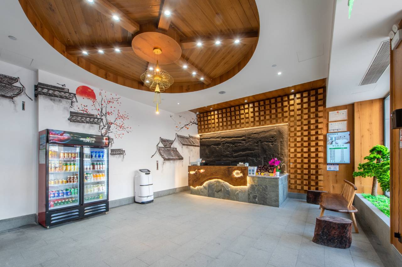设施:房间干净无异味,前台阿艳服务热情,免费停车,还有小机器人,免费送物品,二楼还有自助洗衣房