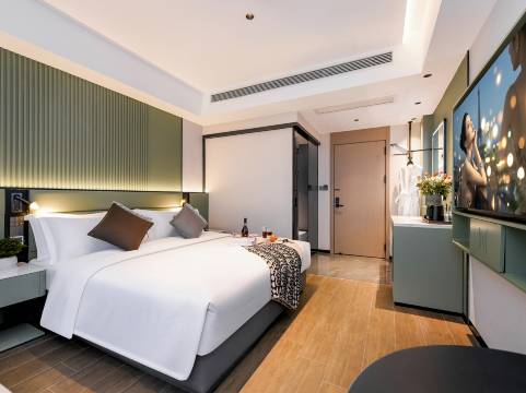 地理位置超赞,交通十分便利周边餐馆、便齐全,出行太方便了!房间干净整洁,床品舒隔音很好,晚上睡得特别香。前台小姐姐态度切,办理入住退房都很快,还主动推荐了附近的景点,性价比绝了,下次来还住这!我非常喜欢这家酒店物美价廉棒棒的很开心很舒适很完美