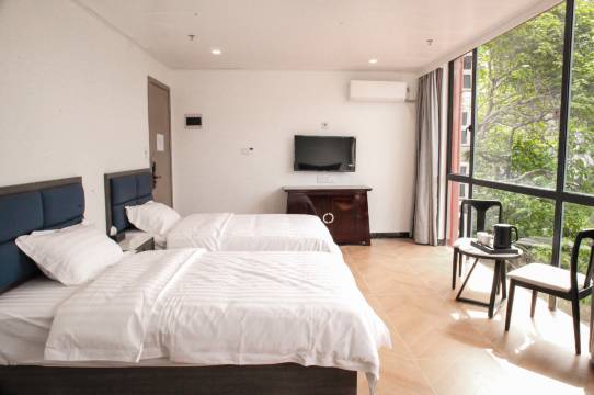 走进房间,更是惊喜满满。房间布置得简洁而不失格调,每一处细节都能看出老板的用心。木质的家具散发着淡淡的木香,床铺柔软舒适,床单被罩洁白如雪,没有一点褶皱,睡在上面特别安心。房间里还摆放了几盆绿植,给整个空间增添了几分生机与活力。透过窗户,能看到外面美丽的田园风光,微风轻轻吹过,树叶沙沙作响,仿佛是大自然在演奏着一首美妙的乐曲。