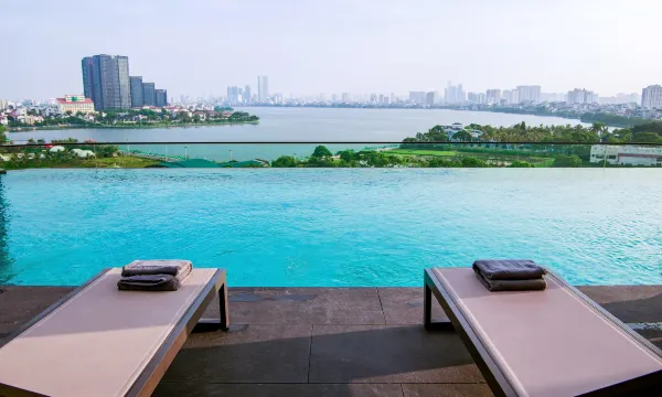 入住体验非常满意,酒店外观设计独特,玻璃幕墙在夕阳下显得格外优雅。房间宽敞整洁,床品舒适,阳台视野开阔,能欣赏到泳池和绿植。早餐种类丰富,越南河粉汤底鲜美,法棍外酥里嫩。服务人员态度亲切,沟通顺畅,前台还贴心提供河内地图。整体感受温馨舒适,值得推荐。