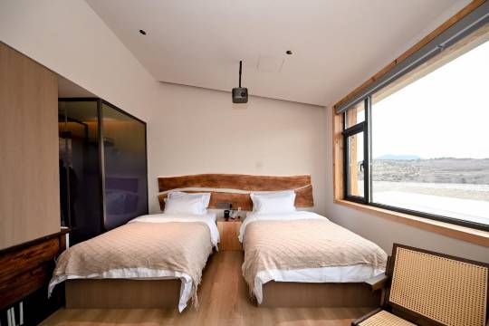 房间干净整洁,设施全面,配有小米智能很方便,拉开窗帘就是山景,地暖温度很足,晚上睡觉有些热