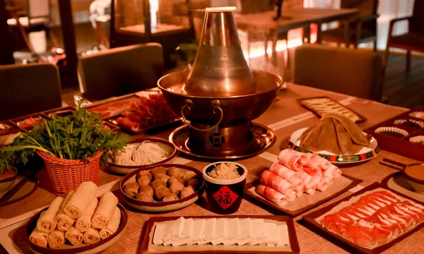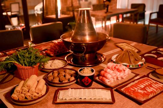 酒店餐食种类多,人多可选炒菜/火锅,也有单人简餐,下次来滑还会住