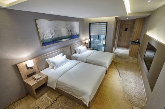 酒店装修舒适,简洁大方,辅以中国山水墨画为点缀。在忙碌拥挤的城市生活中,为您提供一处静谧的港湾。泡一壶清茶,看窗外世界云起云落,只为独享这一刻的美好。