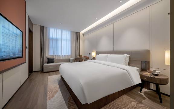 客房设施全新且贴心,全屋智能客控、无线充电、智能马桶一应俱全,床品柔软亲肤,卫浴干湿分离还配了高品质洗护,卫生细节更是满分,犄角旮旯都一尘不染。房间隔音超棒,在园区内不临街,住起来特别安静。
