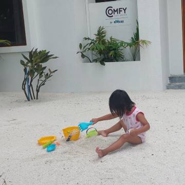 EMzaz舒适凉风位于堤夫施,距离迪富士南滩和迪菲舒东风筝海滩不到 10 分钟步行路程。 该海滩酒店紧邻蜜月岛海滩及米鲁蜜月岛屋礁。