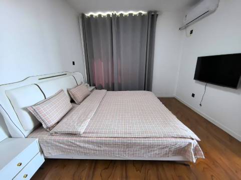 房间装修挺好的,简单大气,就是卫生堪忧,床头柜有土,柜子里有脏东西,像是很久没住过人了,不知道被子上有没有土,看不出来。