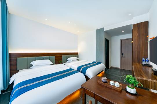 房间干净透亮,虽然是民宿,但是可以达到酒店标准。两张床都是1.5m的大床。