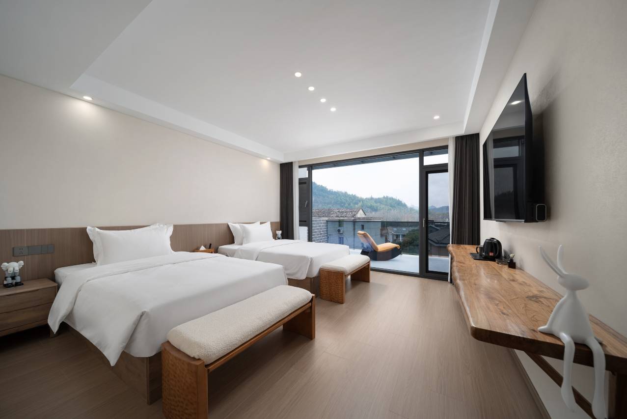 在车水马龙的尘世中疲备奔波,内心深处是否总有个声音,呯唤你奔赴一处静端之地?在浙江省丽水市缙云县仙都街道鼎湖村 193号,民宿静候于此,宛如一位隐居山水的雅士,以其独特魅力,吸引着每一位渴望挣脱喧器、寻觅安宁的旅人。其坐落仙都景区旁,地理位置得天独厚。远处山峦连绵,云雾缭绕,似水墨长卷;近处溪流潺潺,鱼儿游弋,花草飘香,满是自然生机。踏入此地,便能真切感受大自然的蓬勃与温柔。民宿外观尽显现代简约,灰白墙面与大幅黑框玻璃窗搭配,利落时尚。夜幕降临,室内灯光透过玻璃洒下,温馨四溢。庭院中,石榴树四季皆美,春夏榴花似火,为庭院添一抹明艳;秋季硕果黒累,诉说丰收喜悦。树下石桌石凳错落,可在此品茶、休憩,尽享自然意趣。 民宿共有9间特色客房。亲子房满是卡通元素,有儿童专属小床、玩具,配备亲子互动设施,是孩子的欢乐天地,让家长与孩子共度美好时光。双床房简洁大方,空间宽敞明亮,床品柔软亲肤,家具实用美观,每扇窗都似天然画框,将窗外美景尽收眼底。大床房各具特色,有的带温馨茶室,泡一杯香茗,赏景闻香,疲备尽消;有的带宽敞会议室,方便商务出行;还有的带豪华浴缸,让身心在沐浴中彻底放松。民宿主人热情好客,从你踏入民宿的那一刻起,便会感受到家一般的温暖。他们熟悉当地的每一处景点、每一条美食街,能够为客人提供详细的游玩攻略与美食推荐,让你深入体验仙都的风土人情。无论是帮助客人预订门票、安排车辆,还是解决旅途中遇到的各种问题,工作人员都会尽心尽力,让你的旅途更加顺利与愉快。民宿,岂止是短暂栖身的落脚之地,分明是灵魂漂泊途中魂牵梦萦的归巢,是心灵在尘世纷扰中渴望奔赴的宁静港湾。于此,城市那令人疲备的喧嚣被远远抛却,你能全身心融入自然的怀抱,聆听山川的低语、溪流的浅唱,轻嗅花草的馥郁,感受每一寸土地的温度。与挚爱亲朋相聚于庭院之中,沐浴在阳光或月色下,欢声笑语如灵动音符,在这片天地间欢快跳跃,勾勒出一幅温馨美好的画卷。让每一次停留,都化作记忆中熠熠生辉的难忘片段!