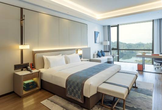 当然房间也是物超所值,无论是行政双床房还是豪华套房,一应俱全,房间干净整洁宽敞亮堂。窗外的风景,怎么说呢,对于我们这种混迹于钢筋水泥的城市人来说,目之所及皆是养眼,心旷神怡。