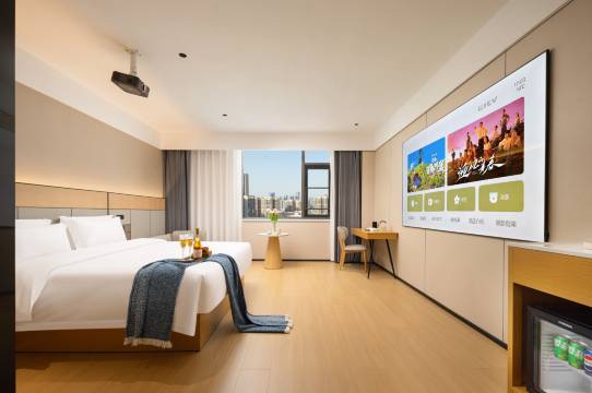酒店位置出行很方便,周边什么东西都有,前台服务热情周到,办理入住退房都特别快。房间整洁干净,床品柔软舒适,设施齐全且维护得很好,卫浴用品品质在线,热水充足。走廊和房间都很安静,遮光效果也不错,一夜睡得特别安稳。房间投影仪效果很棒,整体性价比拉满,下次来还会选择这家!