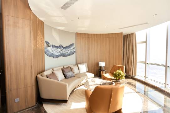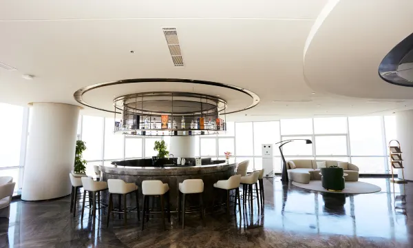 酒店的地理位置太绝了,坐落在牟平区滨海东路的百米高楼之上,北望养马岛的碧波万顷,南眺昆嵛山的层峦叠嶂,270度的视野把山海美景尽收眼底 。尤其喜欢42层的云端大堂,乘电梯高速抵达时,仿佛瞬间闯入天际观景台,随手一拍都是氛围感大片。