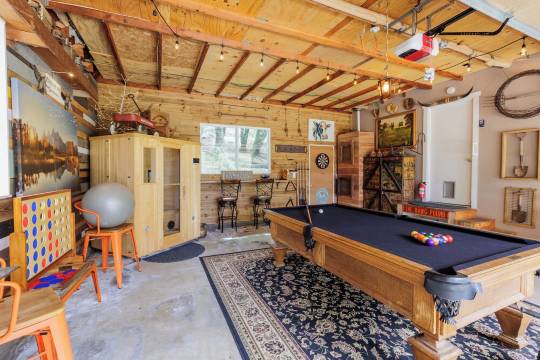 走进附带的车库,您很快就会意识到,这里不仅仅是一个停车的地方——它是一个专为娱乐、放松和团聚而设计的舒适休憩之所。车库内设有一间豪华的红外线干桑拿房,是探险一天后放松身心的理想场所。几步之遥处,一张台球桌可供您进行友谊赛,而飞镖靶和巨型四子棋则为各个年龄段的人们带来欢笑和竞技。