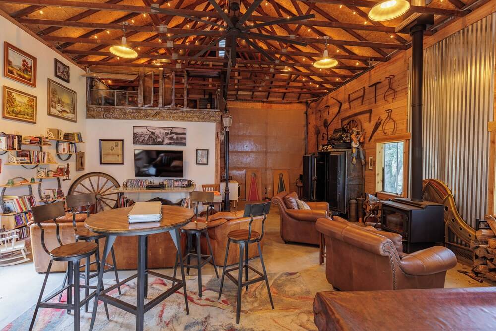The Roost 是由谷仓改建而成的迷人建筑,旨在提供舒适和乐趣。在车库内,您会发现充足的舒适座椅围绕着温暖的燃木大肚炉。玩一局沙狐球或扑克,浏览图书馆,或从大量电影中挑选一部,享受一个轻松的夜晚。这里充满了古董和古怪的珍宝,每个角落都有有趣的东西可供探索,让每次访问都充满乐趣。