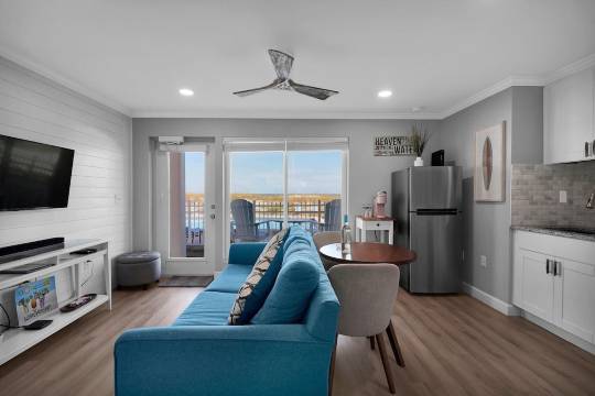 这间精美翻新的公寓提供轻松的二楼生活、奢华的海滨景色以及度假村式便利设施,为您提供轻松的海滩度假所需的一切。