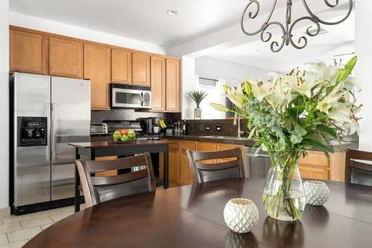 抵达后,您会发现一条可停放多辆车的私人车道,让您轻松停车。这套住宅还配备了无钥匙入住系统,确保客人入住流程顺畅无阻。