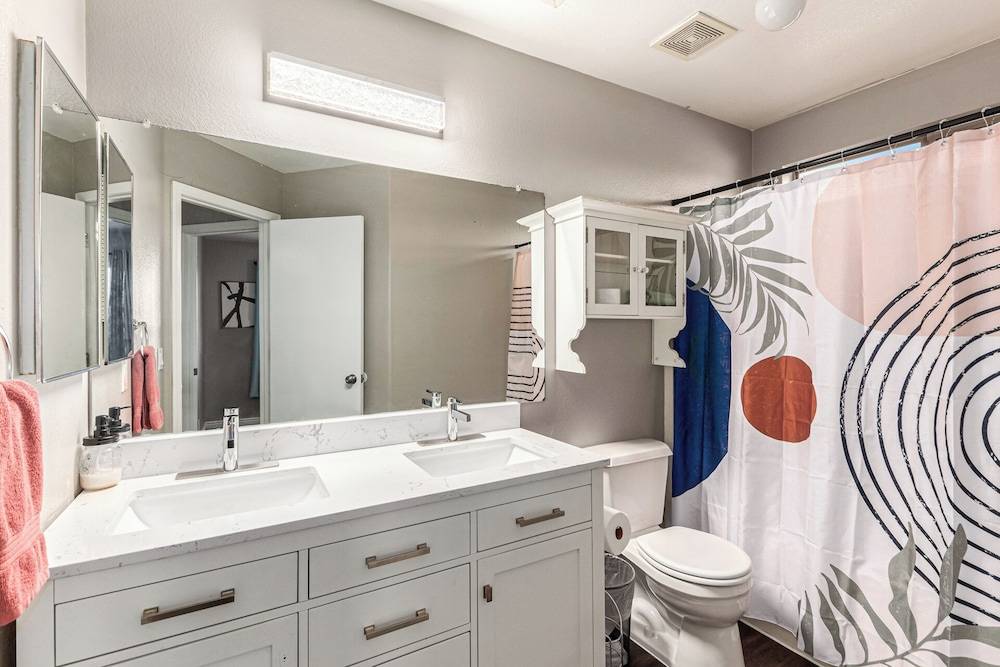 恒温泳池*!想找个干净、有趣、舒适的住处,就在体育场馆、P83餐厅/娱乐区、购物中心等等附近!就是这里!这里空间宽敞,活动丰富,是朋友家人聚会的好去处。台球桌、影剧院、游泳池、咖啡吧、3 台电视(75 英寸),为您带来**娱乐!此外,您还可以带上自行车或沿着自行车道散步/跑步,看看附近池塘里的鸭子!