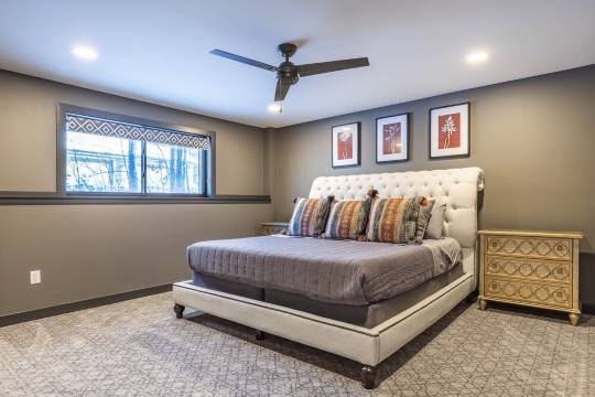 春、夏、秋季的租客可以直接从地下室的推拉门走到一个大型无烟火坑,那里配备了8把椅子。我们还提供了一个丙烷烧烤炉,方便您进行户外烧烤!烧烤结束后,您可以一边在火坑旁放松,一边玩我们定制的沙包游戏。或者,您可以下楼去湖边,那里有一个大型码头,配备戏水池、皮划艇和桨板供您使用。请注意,以上提到的设施在11月、12月、1月、2月、3月和4月不提供。码头**也要到五月才能使用,具体时间取决于湖面冰雪融化情况。