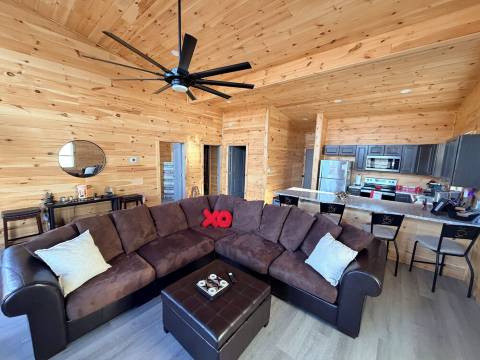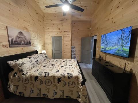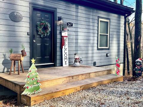 这间新建的小木屋地理位置优越,位于前往红河峡谷/天然桥地区的途中,毗邻75号州际公路/64号州际公路。小木屋拥有970平方英尺的开放式格局,14英尺高的挑高天花板让您在享受居家舒适的同时,也能感受到山间风情。这间两卧室小木屋可舒适入住6人。卧室1配备一张大号床、梳妆台、高柜、床头柜、55英寸智能电视和衣柜。卧室2则配备一张精美的北明尼苏达松木双层大号床、高柜和衣柜。浴室配备全新洗衣机和烘干机、带镜子的48英寸洗手池和淋浴房。家庭活动室/厨房一体式设计,设施齐全,是您享受家庭时光的理想之选。 55英寸智能电视,10种不同的棋牌游戏。设施齐全的厨房,配备咖啡机、烤面包机、搅拌机和制冰机。提供6位客人所需的所有餐具、锅碗瓢盆和厨具。所有床单、枕头和毛巾均已包含在内。300平方英尺的大露台配有4张躺椅和2张超大滑翔椅,供您欣赏日落/日出。免费星链Wi-Fi。关于宠物:允许携带宠物:狗(最多2只)。关于退房:请在上午11:00前退房。关于儿童:允许携带儿童:0-17岁。关于自定义规则:禁止吸烟 - 这是一处禁止吸烟的度假租赁房产。禁止在屋内吸烟、使用***或任何烟草制品。如果清洁人员在租赁房产内闻到烟味等吸烟痕迹,则足以构成向客人收取烟味清洁费用的理由。宠物毯子需另行购买。沙发使用后,宠物毛发过多可能需要额外清洁,费用另计。入住须知:下午 4:00 后可办理入住。吸烟须知:禁止吸烟。**预订年龄:**租客年龄为 25 岁。活动须知:允许举办的活动包括:家庭聚会、生日派对、婚礼。最多可容纳 6 人。
