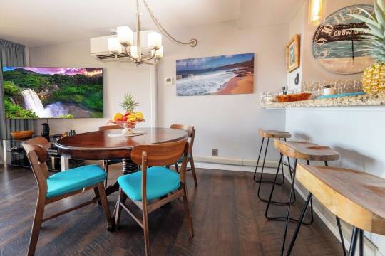 我们还在厨房提供定制烘焙的考艾岛咖啡,让您以美好的一天开始。我们的服务包括一系列便利设施,包括免费停车位、无线网络和公寓内的洗衣机/烘干机。为了确保您拥有非凡的体验,我们为客人提供酒店级用品,例如每间浴室配备的全套毛巾和三卷卫生纸、肥皂/洗发水/护发素/乳液、洗涤剂、纸巾、面巾纸和垃圾袋,以满足您入住前几天的需要。